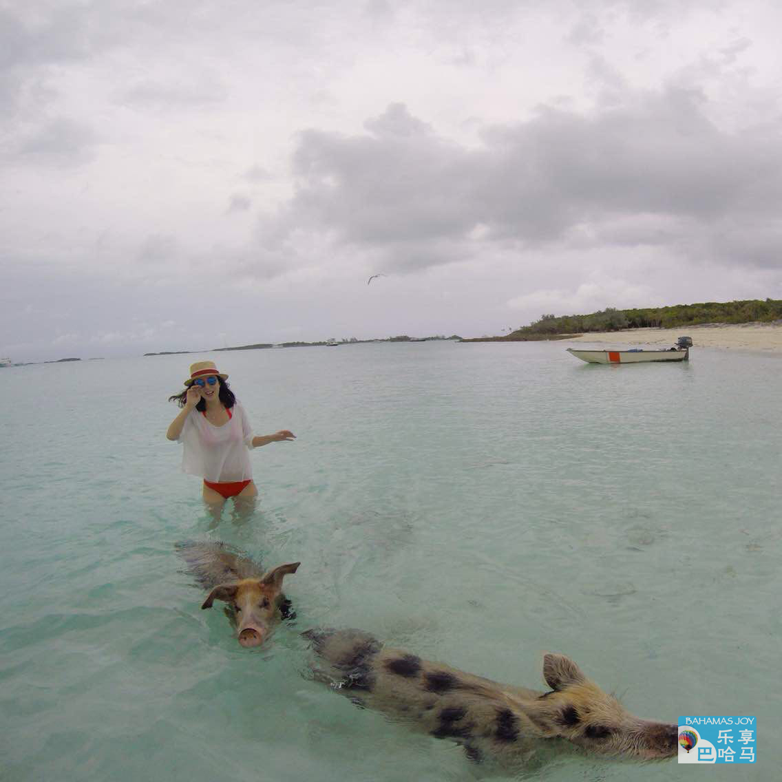 猪岛 传言说,这些猪是多年前水手途径该岛时放下的,希望成为日后航海时的食物补给,但自此水手并无回来,而猪仔们在岛上繁衍接代。这些猪生活非常惬意,每天除了吃、睡就是游泳。它们简直是全球最幸福的一群猪。这些猪非常喜欢沿着海岸在水中冲浪,它们对乘船到来的游客给与热情欢迎,并因此成为旅游看点。 视频来源:https://www.youtube.com/watch?v=BJuL-yK-I8g